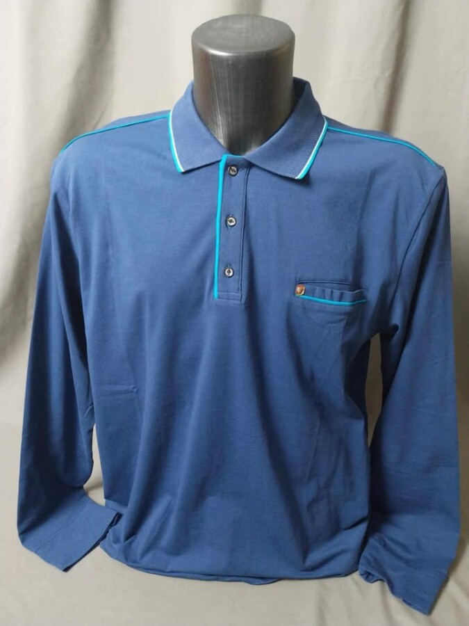 Moška polo majica v modri barve. Primerna za različne priložnosti. Na koncu rokava ima patent , mehki ovratnik in tri male gumbe.